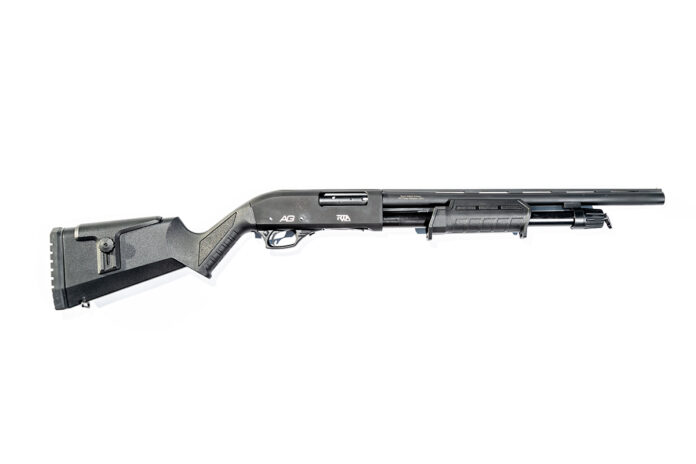 The AG Pump Defense is a real crowd pleaser. Economically priced, it felt solid and performed well. The triangular safety button sits at the rear of the triggerguard and the action bar release sits on the left side near the front of the triggerguard. It only has a bead sight, but we all found it pointed easily. The main reason we all liked this shotgun was the furniture. The stock looks similar to Magpul’s shotgun stock, plus it has an adjustable cheek rest. The fore end is slim and has sling attachment points at both ends. I probably would never attach a sling to the “pump” on a shotgun, but my pinky rested on the raised edge at the back and made racking the shotgun easy. It comes with three chokes (Full, Modified and Improved Cylinder) and a choke wrench. The length of pull can be shortened by removing a spacer, which we did. Two of us are vertically challenged so we outvoted the tall guy. We would have preferred some kind of rear sight to make it easier to shoot slugs at a distance, but at the price point, we can afford to have the receiver tapped and a Picatinny rail added for a red-dot if we really thought that was an issue.