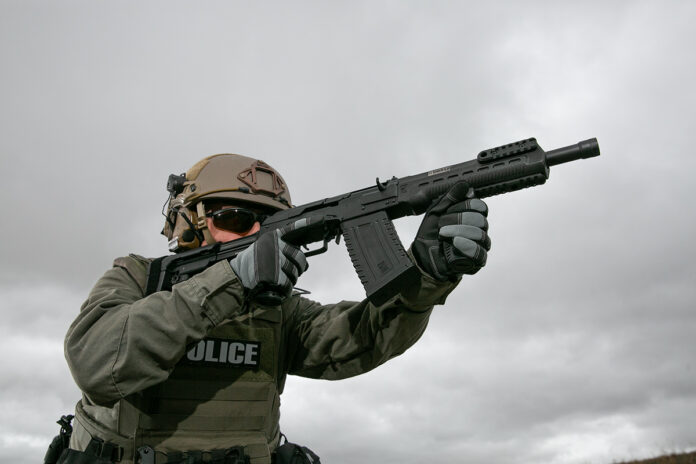 The Komrad is essentially a 12 gauge based on the famous AK-47. Again, it’s technically not a shotgun, but we considered it one for this evaluation. The short, threaded barrel, railed forend, vertical foregrip and pistol stabilizing brace make it look iconic, to say the least. The shorter barrel also made it far more maneuverable than the other shotguns in tight areas. When you are trying to make entry into a bedroom from the hallway of a single-wide, an 18-inch barrel is simply too long. The included five-round removable magazines also made for fast reloads. However, in true AK fashion, the bolt closes after the last round is fired. You have to flip the safety up to lock the bolt open.