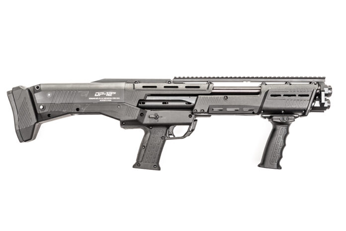 The DP-12 was also a former contender on Best of the Best. It is a bullpup, pump action with dual magazine tubes and…wait for it…two barrels. You work the action once, then pull the trigger twice, then work the action again. It holds 14+2, has a full-length Picatinny for sights, lots of M-LOK slots, AR-style ambidextrous safety, ejects and loads out of the bottom, and is ridiculously fun to shoot. It feels very heavy, but that weight soaks up recoil. Despite such an unusual design, every evaluator commented that it was very user friendly and loaded easily, although in an unusual way since there are two tubes and you reach up through the ejection port. It was one of the more expensive shotguns, but with the fantastic engineering and construction it is easy to see why.