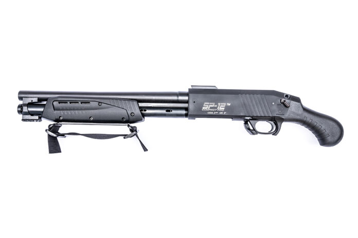 At the time of testing, the SP-12 Compact Pro had not yet gone into full production, so we tested a prototype of the gun. As a result, there were a few quirks. The full size SP12 has a shroud and Picatinny rail on top. This model didn’t have that piece, which made aiming difficult. What we liked about it was it loaded easily because, like the Ithaca 37 shotgun, it has no lift gate. The bottom is wide open and thumbing shells into it couldn’t be easier. It will feed 1¾-, 2 ¾- and 3-inch shells without modification. It boasts an ambi-safety but we felt it should have been reversed. You rotate the lever back to go to “Fire,” and it feels like you should push forward for “Fire” like most other guns. Perhaps they will change it in the final version. We also felt the birds-head pistol grip would be less punishing without the flared top. We all loved the oversized, ambidextrous action bar release. We also liked the Picatinny mounted at the front to place a light or a laser for aiming. With a 14-inch barrel and only 26.75-inch overall length, this is a great little truck gun. However, without a stock or usable sights, it was an unfair matchup against the full-size shotguns. I think it would have scored much higher if competing against similar pistol-grip-only pump guns.