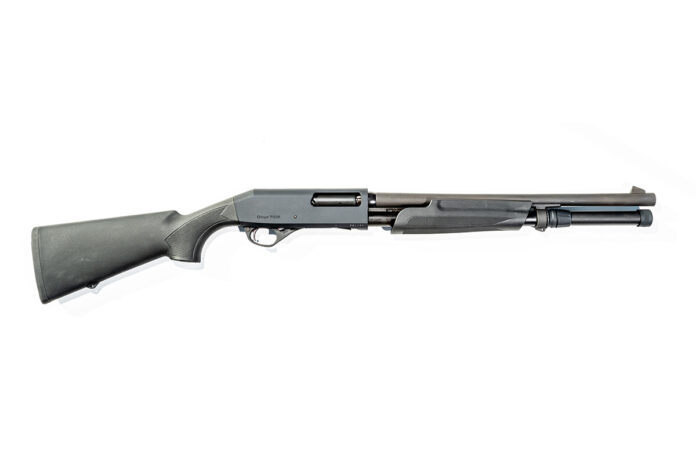 The P3000 is a pretty simple shotgun. It has a blade front sight, but no rear sight. The safety is at the back of the triggerguard, and the action bar release is at the front on the right side. Everything about the guns feels solid: It has a good trigger and the furniture is comfortable to hold. It shot good groups, though one of the judges caught his thumb in the notch of the lifter while loading. Besides that, comments amounted to it being a good price point for a simple, reliable tactical shotgun.