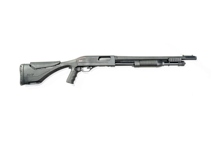The SXP Shadow Defender proved a nice middle of the road tactical shotgun. First, the safety is at the front of the triggerguard, where I prefer it, allowing you to keep your trigger finger extended in a relaxed position until you need to click it off. The action bar release is at the back of the triggerguard on the left side. The stock is simple and comfortable with a very solid adjustable cheek rest. I would prefer a little shorter length of pull, but again, I am vertically challenged. An ingenious slide-on system put two Picatinny rails at the end of the magazine tube, and tightening the magazine tube cap locks them up solid. The front sight is a green fiber-optic that snaps onto the barrel and is held in place by the normal front sight bead with no rear sight. Fortunately, the receiver is drilled and tapped so an aftermarket Picatinny rail can be added for a red-dot sight. We all agreed that the gun was easy to load and run, and shot well with good accuracy. The trigger was a little harder than I prefer, but overall, it is a very nice tactical shotgun at a good price point.